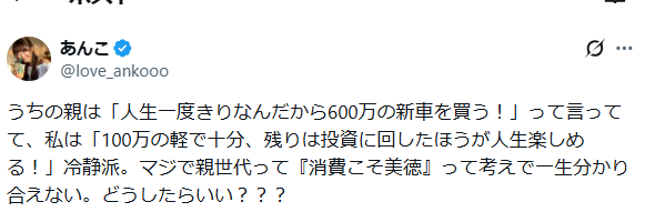 そういう土壌がおそがけですが30代以降で育ってきたことで、消費を後にするマインドが育ちました。