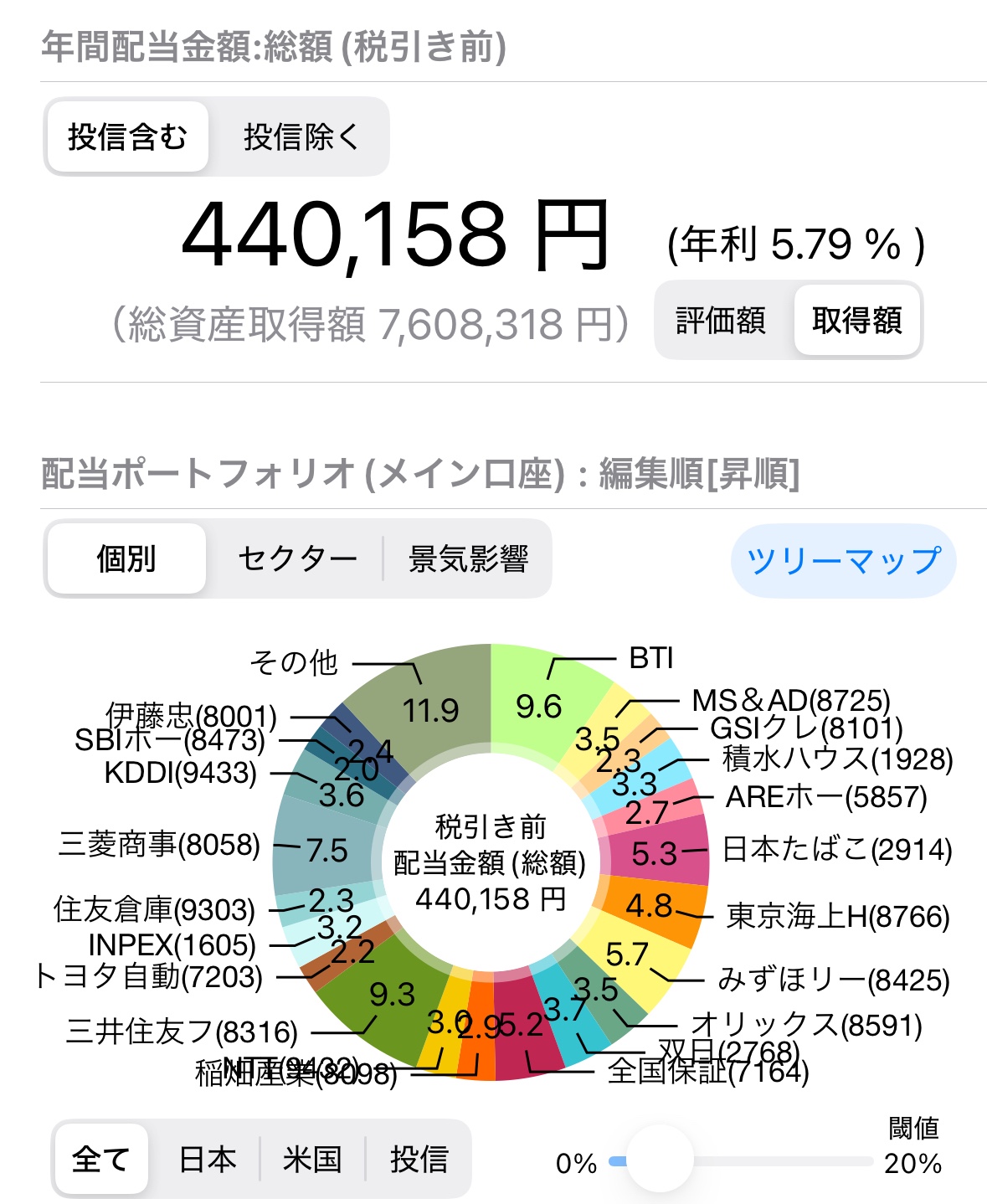 画像は配当アプリです。
