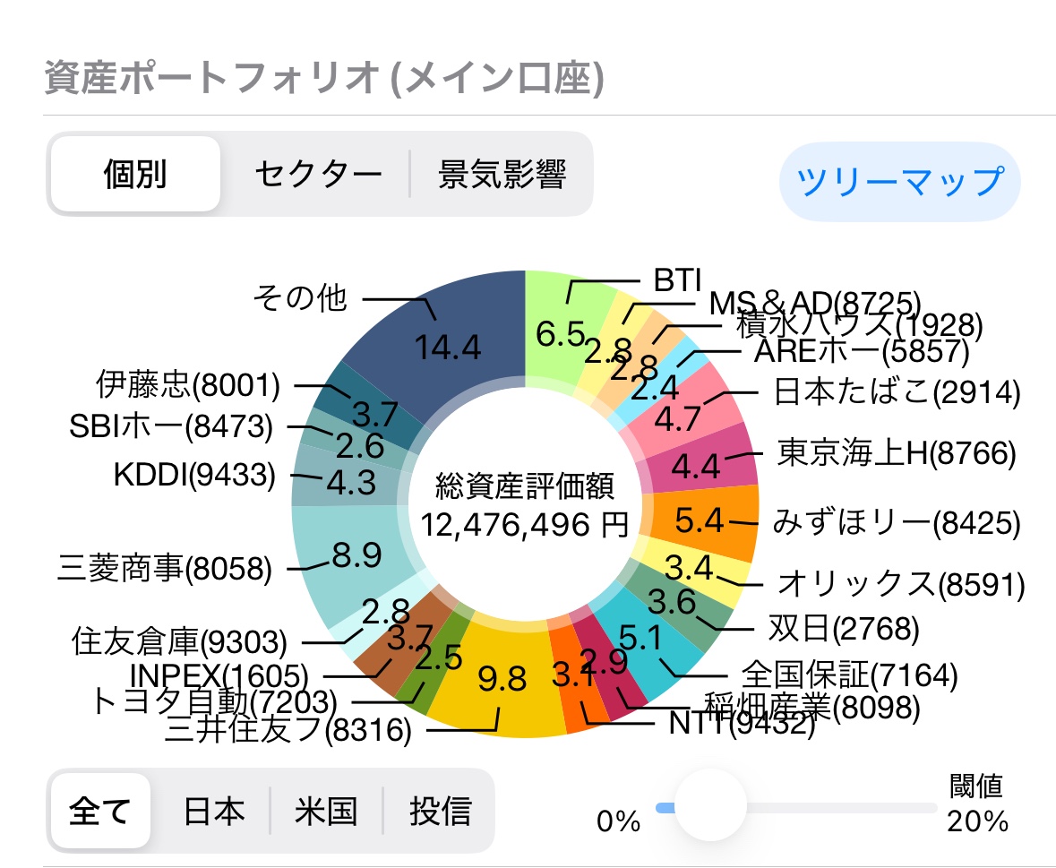 ほぼ東京海上100株購入した分が増えているということで、投資分ではほぼ変わりなしという感じでしょうか。