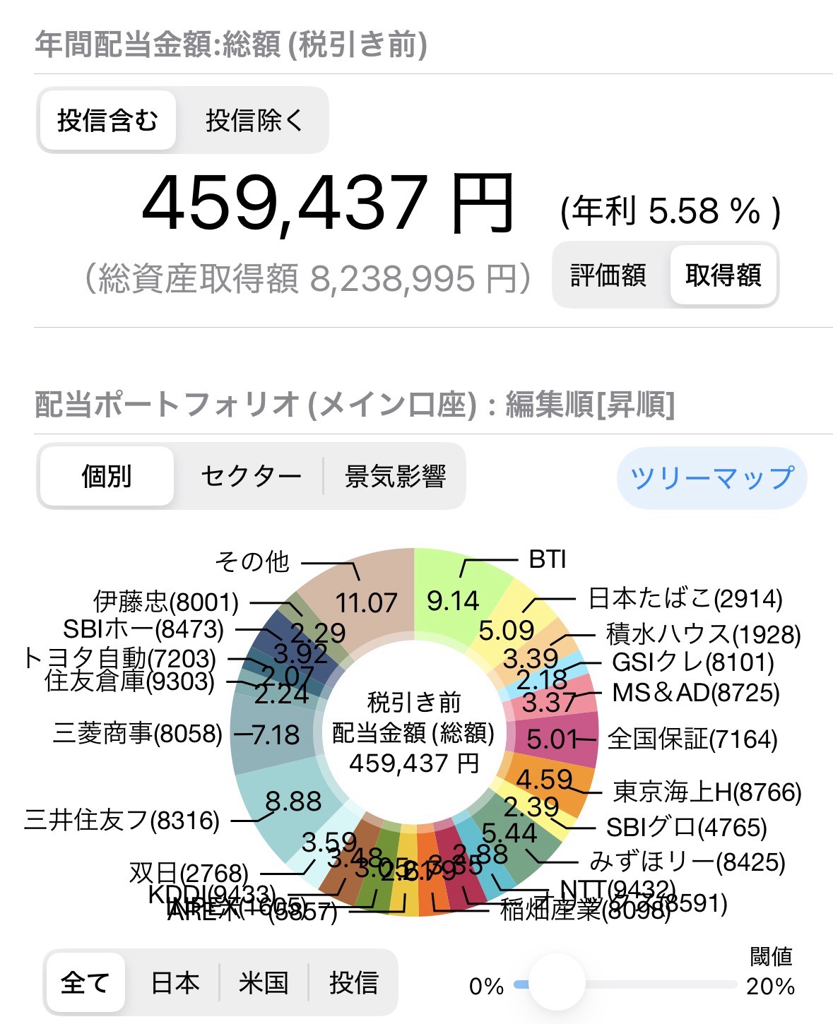 画像は配当アプリです。