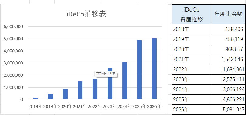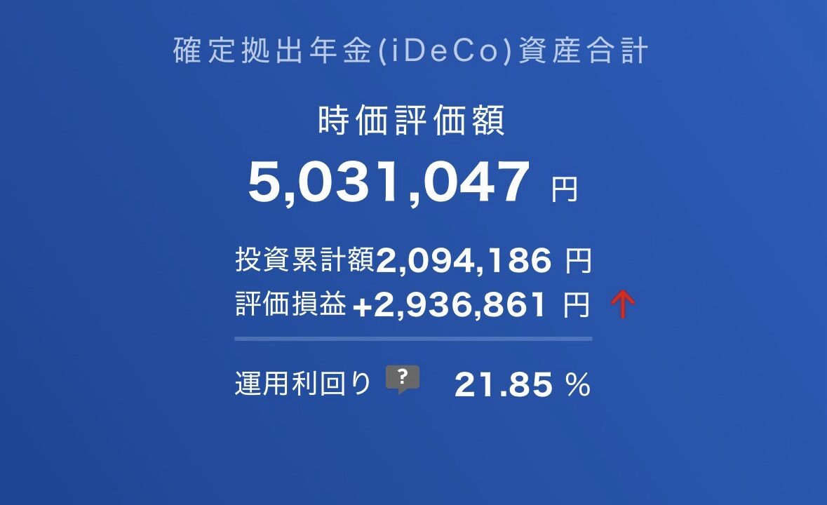 iDeCoは原則解約できないので、これが功を奏して大台に乗った。